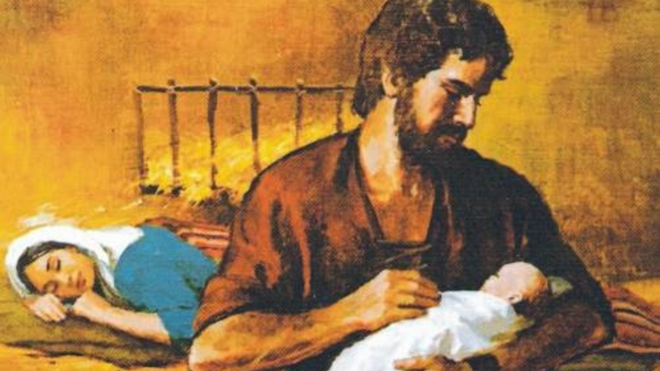 Pero siento que, al buscar para la postal por la red imágenes de José, esposo y padre de familia numerosa (cuyo primogénito es Jesús), los cientos de fotos que encuentro reproducen la figura asexuada y entrada en años de un José que más bien parece tío-abuelo de Jesús y mero fraternal acompañante protector de María. Así se desfigura el misterio de la Encarnación: la Sabiduría divina se hizo carne, naciendo de mujer, que concibió (acogió) en sus entrañas el fruto de la unión de los esposos bendecido por obra y gracia del Espíritu Santo.