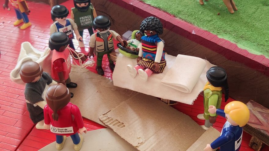- Como cada año, Francesc Mateu i Hosta, exdirector de Oxfam Intermón, recrea el pesebre con muñecos de Playmobil para mostrar su visión de cómo sería el nacimiento de Jesús en la realidad actual