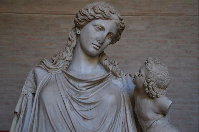 La paz en el mundo griego tenía rostro femenino. Eirene era una diosa, mencionada ya por el poeta épico Hesíodo en el 700 a. e. c. Hija de Zeus y de Temis, formaba, junto con sus hermanas Justicia (Dike) y Buen Gobierno (Eunomía), el conjunto de las “Horas” o Estaciones a cargo de la justicia y la paz social pero también de la prosperidad material.