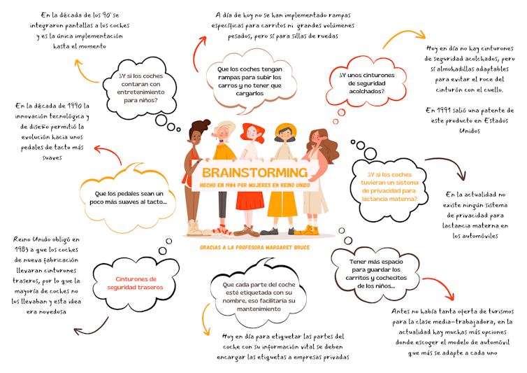 Otra de las ideas que recibió Bruce consistía en poner etiquetas para identificar las piezas del coche y facilitar el mantenimiento. Además, el grupo de mujeres propuso ideas relacionadas con el cuidado de bebés que aún hoy apenas se han explotado.