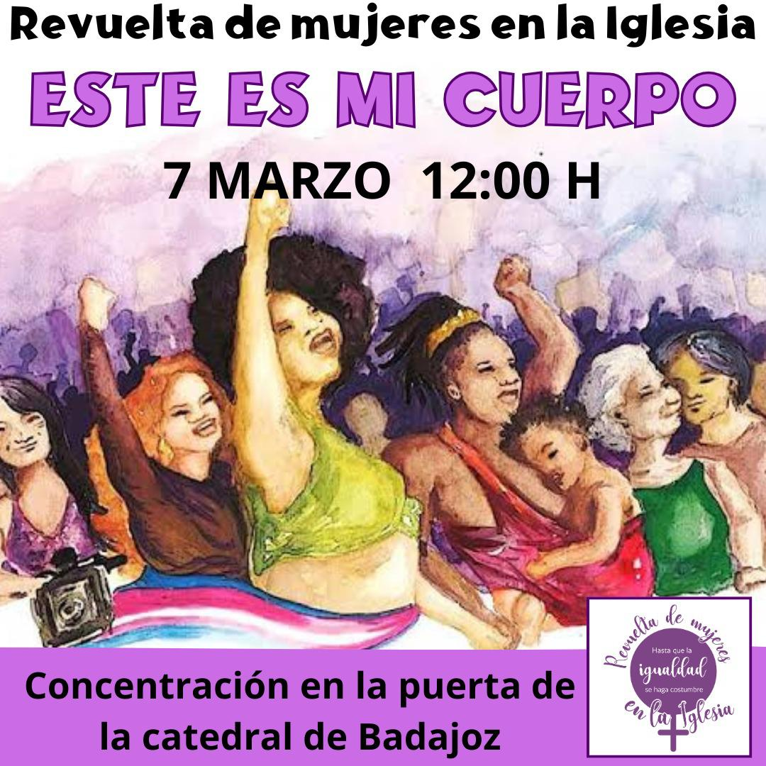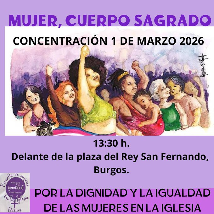El movimiento de la Revuelta de las Mujeres en la Iglesia alza la voz este domingo bajo el lema “Este es mi cuerpo”, en el marco de las celebraciones del 8M, Día Internacional de la Mujer, en 33 territorios españoles para reivindicar la igualdad en la Iglesia, demandar pleno acceso a todos los cargos y servicios, y decir “basta”.
